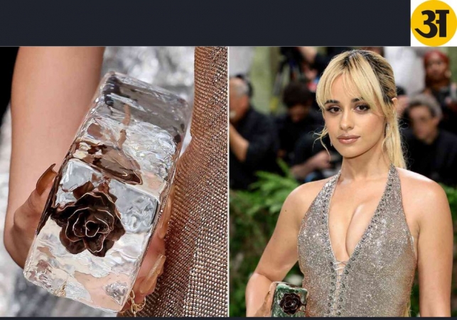 Cabello's ice purse, worth $22.5K, was meticulously handcrafted and took 85 hours to complete. It boasted a handcrafted rose made of 18k rose gold, adorned with flawlessly cut 0.50 carat diamonds, and filled with water from the NEVAS in Germany. This accessory not only added to her ensemble but also embodied the theme of impermanence, aligning with the "Sleeping Beauties: Reawakening Fashion" theme and "The Garden of Time" dress code.