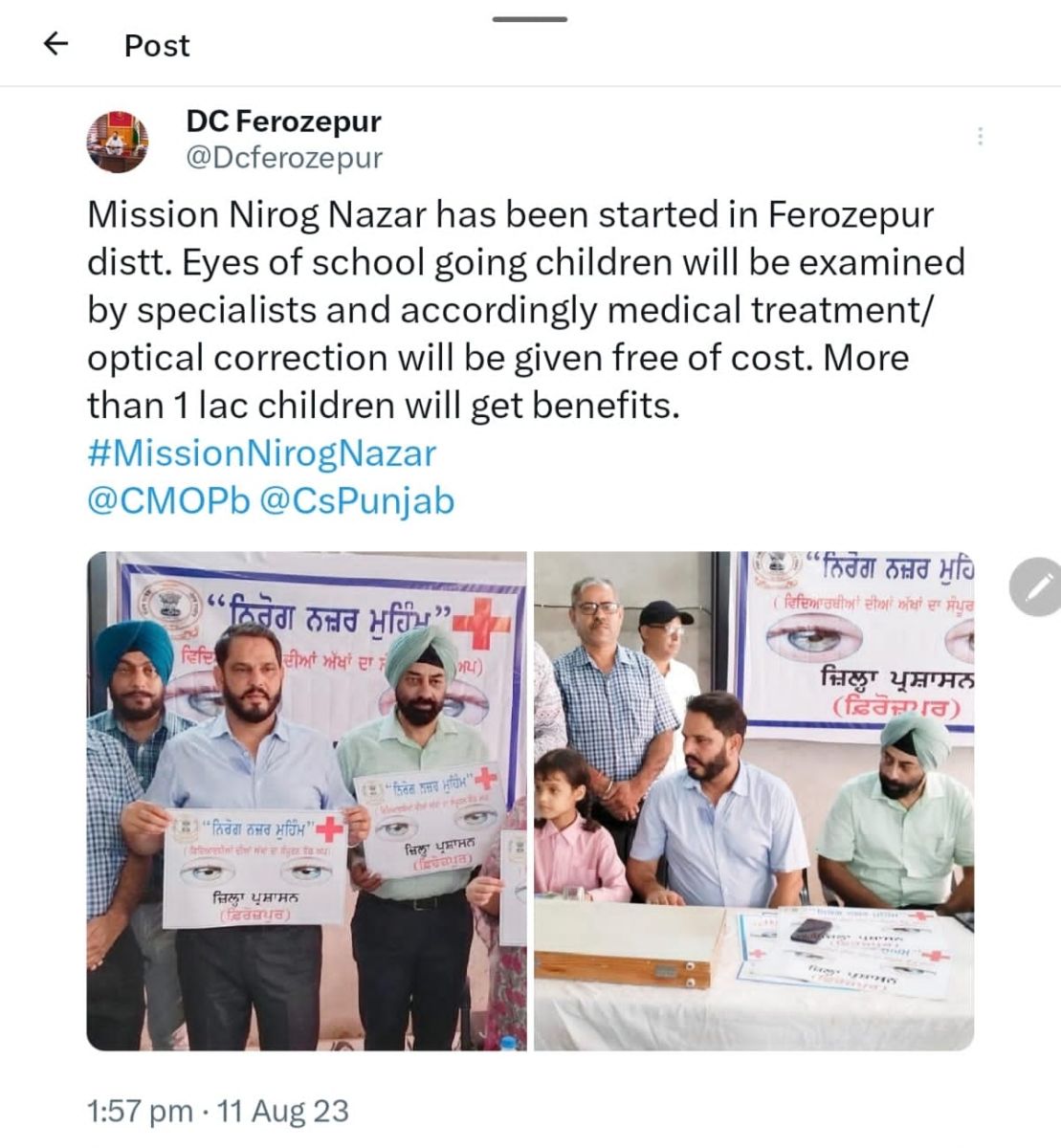 The "Nirog Nazar Campaign" is set to cover 11 educational blocks within the district, encompassing approximately 1.25 lakh students. Deputy Commissioner Dhiman emphasized the holistic nature of the campaign, focusing not only on identifying and treating eye-related concerns but also on advocating for overall health among students. The endeavor aligns with the vision of nurturing a generation of well-rounded and healthy individuals.